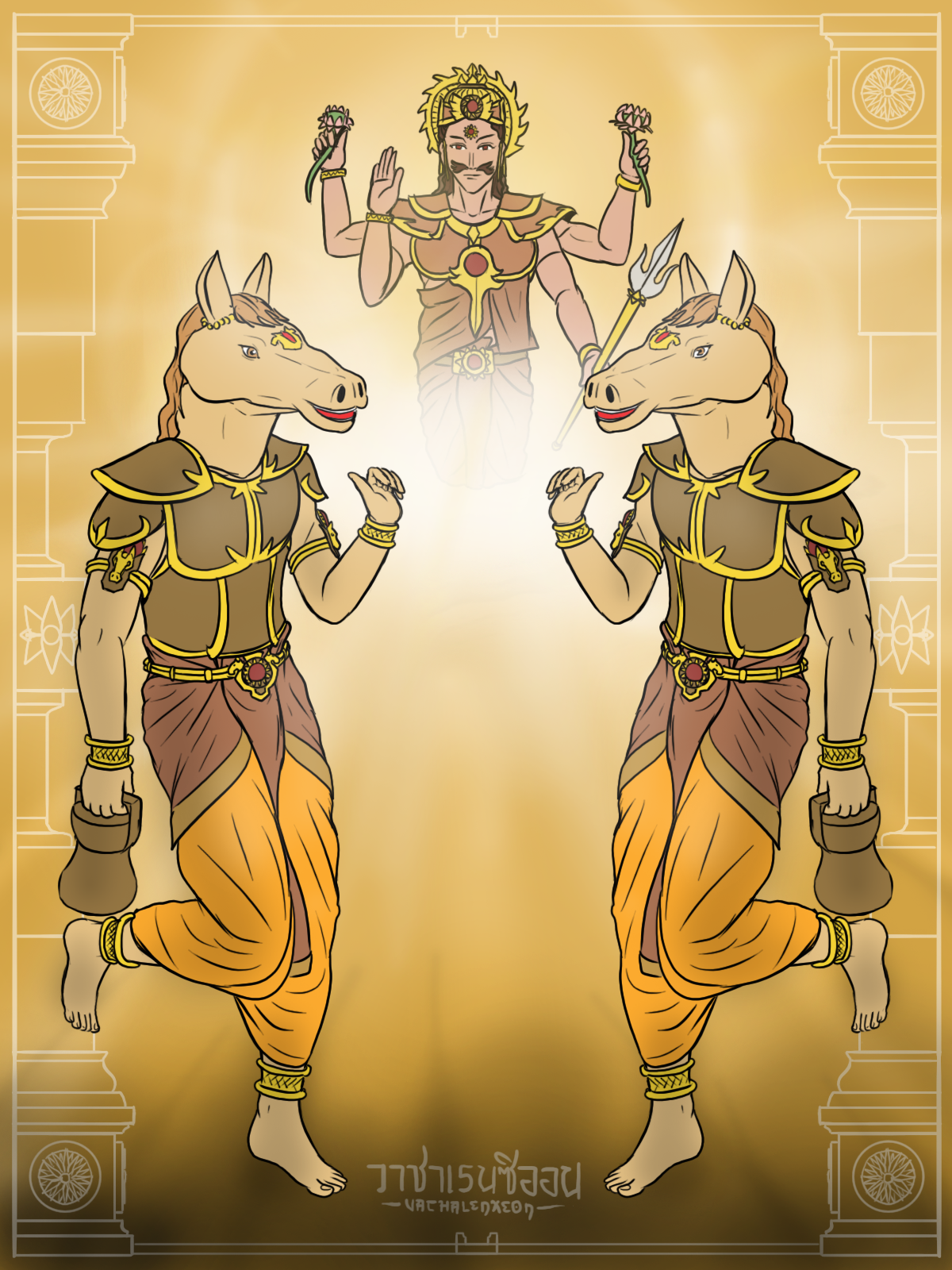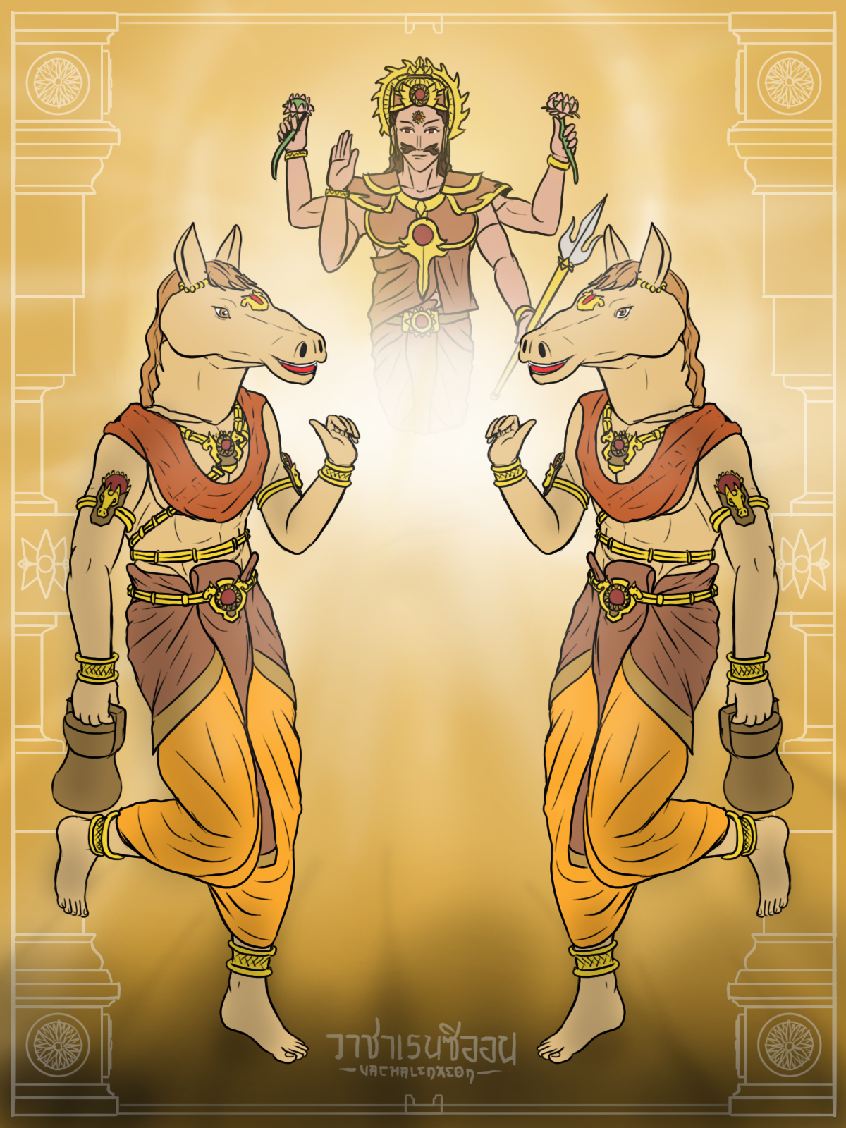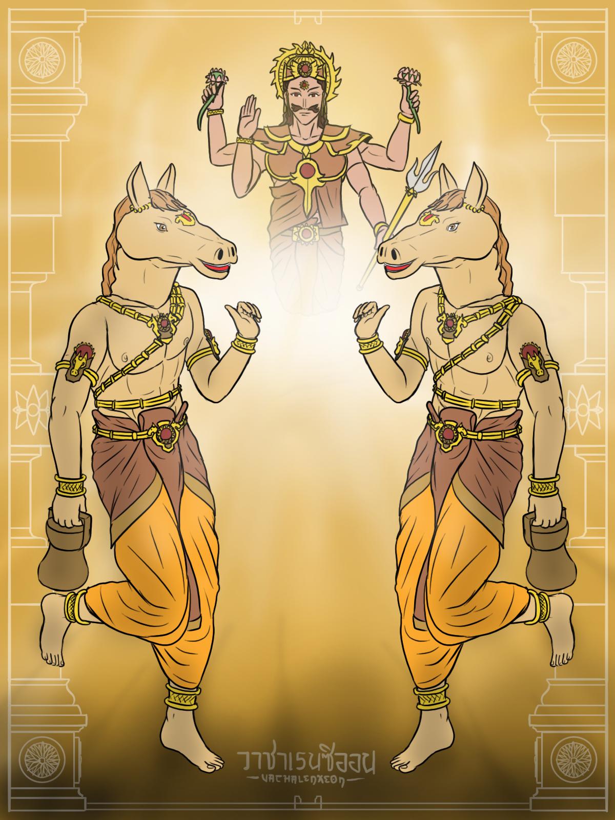 ตัวละครในผลงาน : พระสุริยะ (พระอาทิตย์), พระอัศวินฝาแฝด (Ashvins , ฮินดี : अश्विन्)