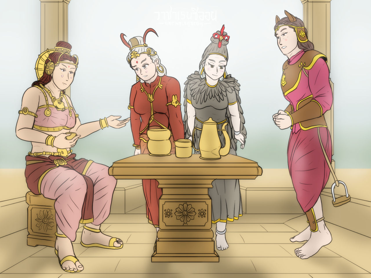 ปกติผลงานแบบนี้ แนวนี้ จะลงในช่วงของวันขึ้นปีใหม่สากล หรือไม่ก็เทศกาลตรุษจีน แต่เนื่องจากทางผู้จัดทำมีภารกิจเยอะ เลยยกยอดมาลงในช่วงนี้เลย กับความอลหม่านช่วงเวลาดื่มน้ำชาของเหล่าแม่ ๆ ย่า ๆ ป้า ๆ ยาย ๆ เทพีนักษัตร "ปีชง" ทั้งปีชวด ปีมะเมีย ปีเถาะ และปีระกา
