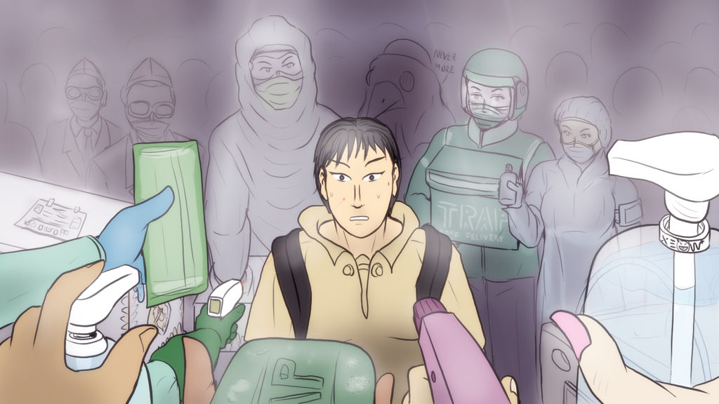 เมื่อผู้ต้องสงสัยคนหนึ่งกำลังจะเดินทางกลับภูมิลำเนา ขั้นตอนการตรวจหาการติดเชื้อ (infect screening) ก็เลยเกิดขึ้น ผลก็คือ ผู้ต้องสงสัยถูกรายล้อมไปด้วยสภาพแวดล้อมทุกด้านทุกมุม