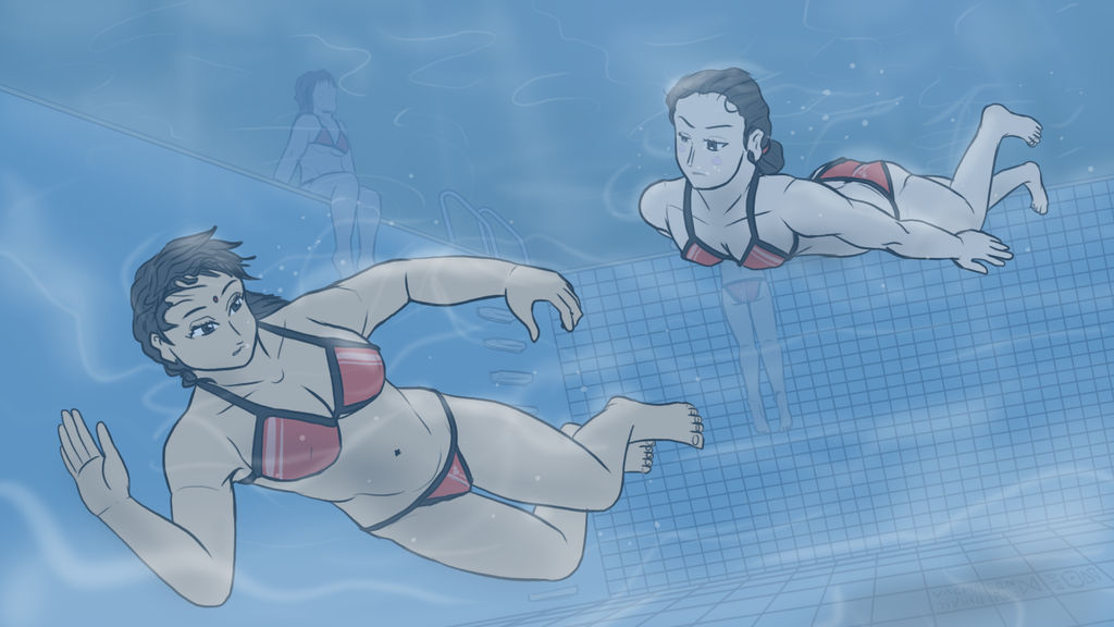 บอกเล่าเรื่องราวความสัมพันธ์ระหว่าง "ผู้หญิงกับผู้หญิง" กับมุมมองสระว่ายน้ำช่วงฤดูร้อนของทางฝั่งตะวันตก ยิ่งในช่วงที่การระบาดของโควิด-19 นั้นจบลง และสิ้นสุดมาตรการต่างๆ ไหนๆ ก็เป็นช่วงเวลาที่จะต้องลับคมทักษะการว่ายน้ำ/ดำน้ำกันหน่อย (มีเวอร์ชันอื่นใน Pixiv และ Twitter)