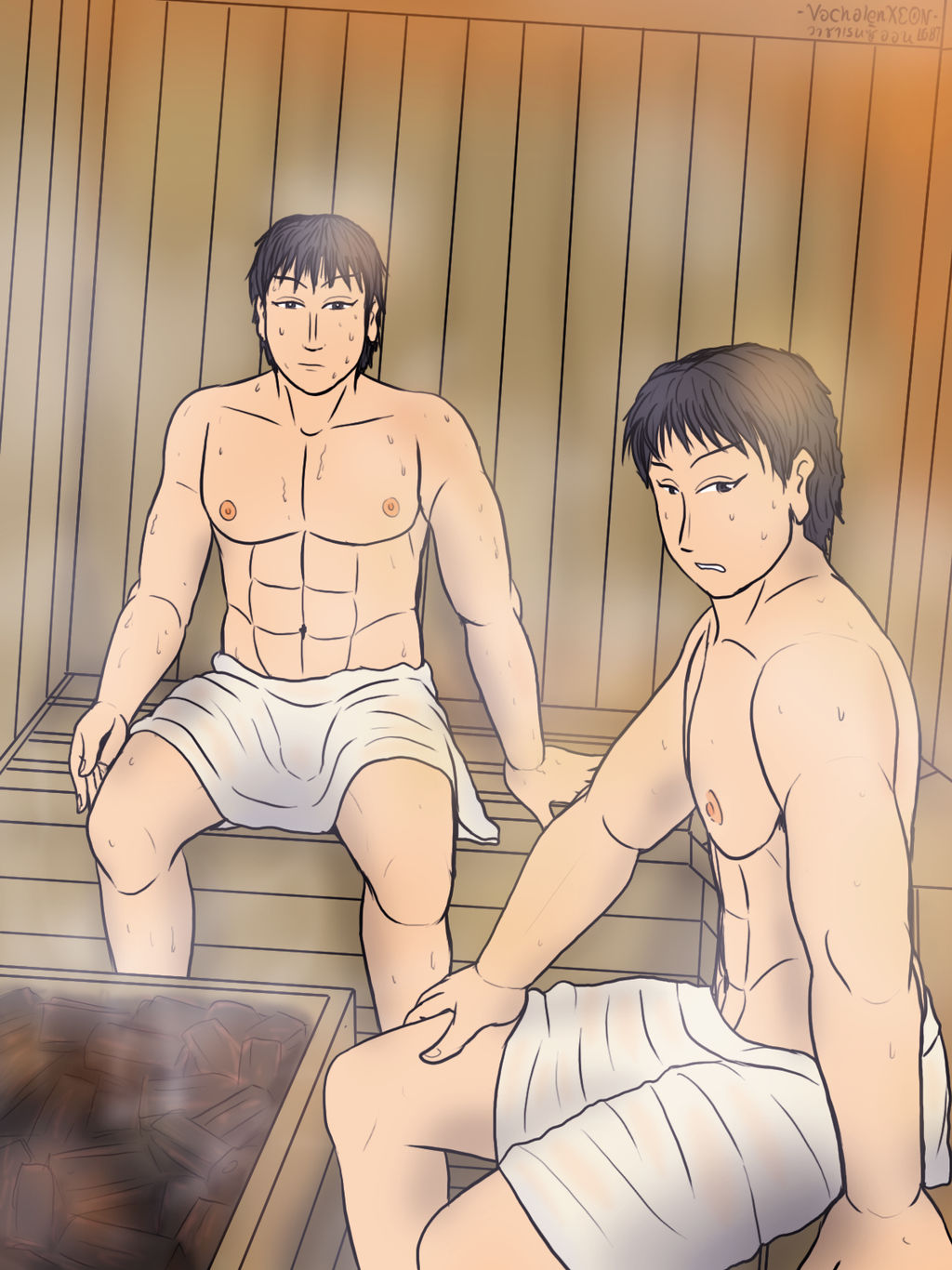 บอกเล่าเรื่องราวความสัมพันธ์ระหว่าง "ผู้ชายกับผู้ชาย" ในสถานการณ์ห้องอบซาวน่า ซึ่งเป็นสถานที่ผ่อนคลายจากความเมื่อยล้า หรือภาระต่างๆ ที่เกิดขึ้นในชีวิตประจำวัน นิยมแช่ตัวเองเป็นเวลาไม่เกิน 5 นาที สลับกับการออกไปแช่น้ำเย็นเป็นระยะๆ โดยไม่สามารถอยู่อบติดต่อกันเป็นเวลานานๆ (มีเวอร์ชันอื่นใน Pixiv และ Twitter)