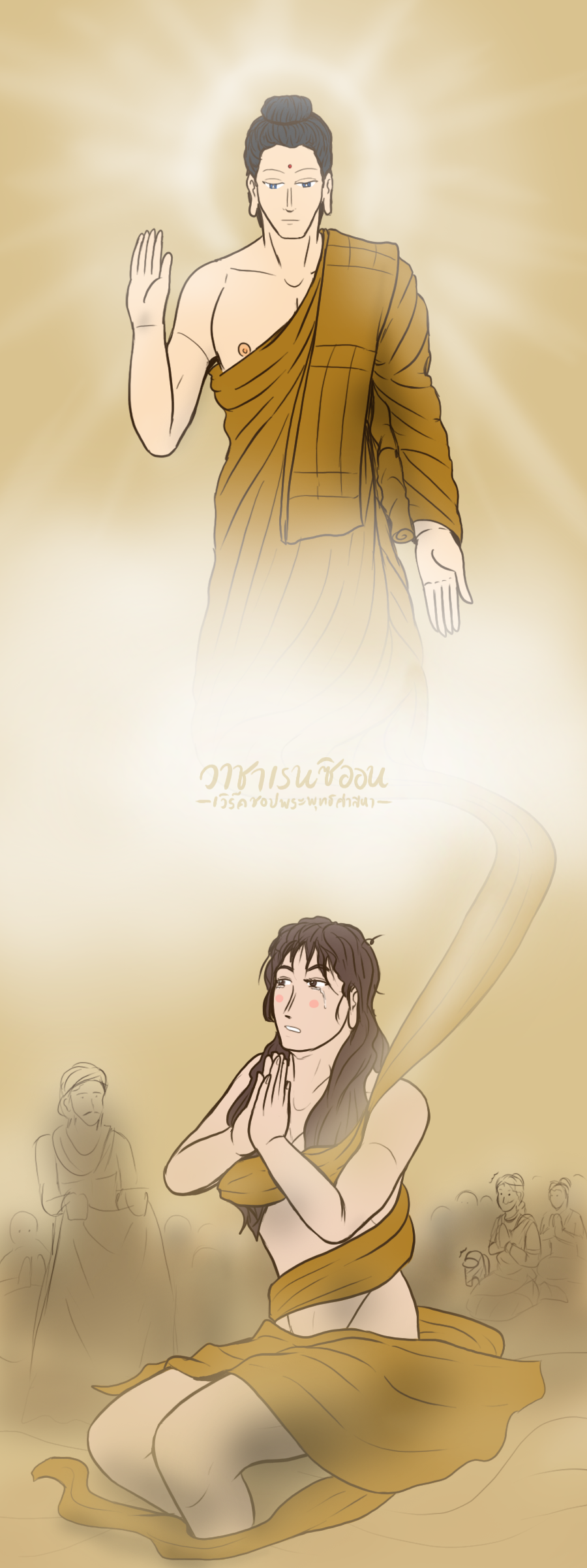 ซิริส์นี้เป็นการรวมผลงานที่มีบุคคลในพุทธประวัติเฉพาะฝ่ายหญิงล้วน มากกว่าชายล้วน (แต่แถมให้นิดนึง...) ถึงแม้ว่าบางผลงานจะไม่สามารถจัดทำได้เพราะมันมีความรุนแรงเกินไป อย่างกรณีของพระสุภาเถรี รายนั้นหนักกว่าเพราะควักนัยน์ตาออกมาสดๆ เลย (เหวอ...สภาพพพพ) เอาแค่กรณีของหญิงเสียสติสภาพเปลือยกายบุกเข้ามาเฝ้าพระตถาคตก็พอแล้ว ซึ่งผลงานวาดแนวศาสนาในเดือนถัดไปนี้ก็จะจัดมาให้รับชมเรื่อยๆ และนำมาเสริมในเอนทรีนี้ย้อนหลังอีกทีนึง ขอแค่อย่าลืมติดตามเอนทรีฉบับใหม่ก็พอ ว่าจะมาในธีมไหนนี่แหละ