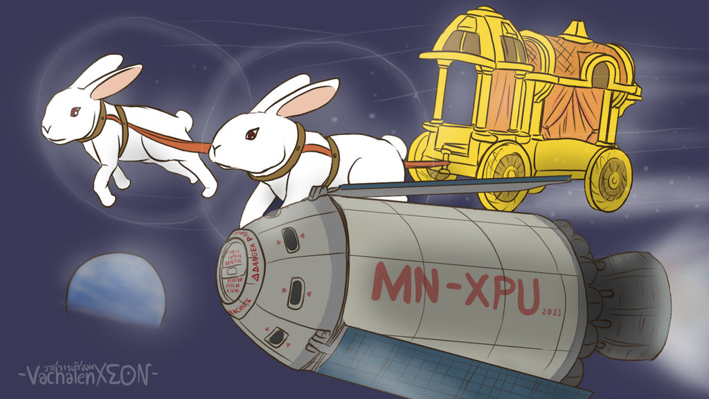 ตำนานที่เริ่มต้นจากเรื่องราวของกระต่ายตัวหนึ่งซึ่งกลายมาเป็นผู้ช่วยเหล่าเซียนตามความเชื่อฝั่งจีน บ้างก็ว่าเป็นตำนานของพระโพธิสัตว์ในชาติกระต่าย เป็นต้น อย่างไรก็ตามแต่ เราอาจจะเคยเห็นมุมมองกระต่ายตำข้าวบนดวงจันทร์จนชินแล้ว เลยยกระดับไปอีกขั้นกับการทำขนมโมจิสดๆ บนดวงจันทร์ไปเลย