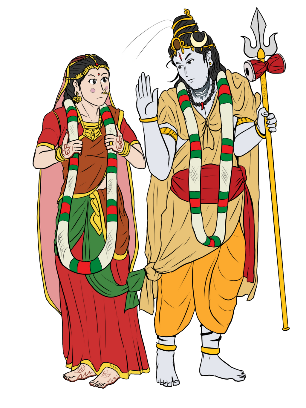 หยิบเอาเหตุการณ์สำคัญของคู่สวามี-ชายามาทำใหม่ในเวอร์ชันของเรา บอกเล่าถึงการแต่งงานระหว่างเทพ-เทพี บ่งบอกถึงการแก้ไขปัญหาเฉพาะหน้าของพระศิวะเมื่อต้องเปลี่ยนมาสวมใส่เครื่องแต่งกายที่เหมาะสำหรับพิธีการนี้ มากกว่าชุดบำเพ็ญพรตที่ใช้เป็นประจำในการเข้าถึงวิถีโมกษะโยคี