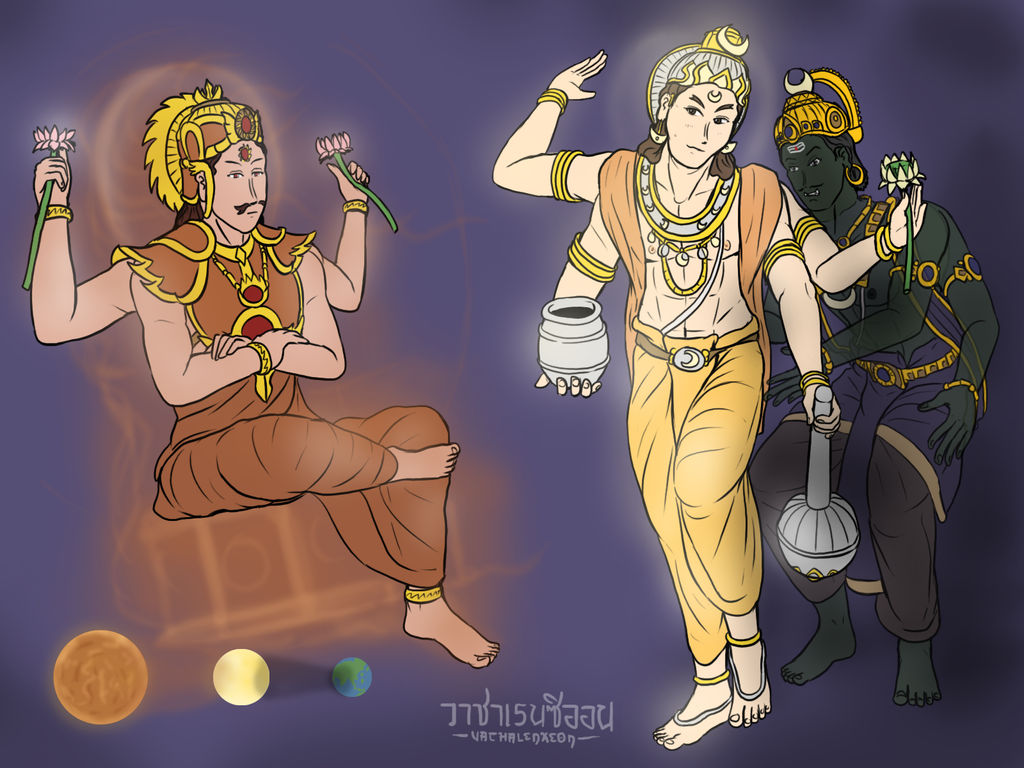 ตัวละครในผลงาน : พระสุริยะ(พระอาทิตย์), พระโสม(พระจันทร์), พระราหู