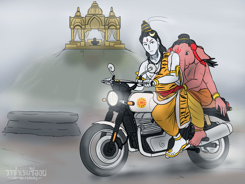 เพื่อเป็นการเตรียมตัวไปร่วมเทศกาล พระศิวะผู้เป็นบิดาจึงต้องจัดแจงการเดินทางให้พร้อม เพื่อที่จะพาบุตรลงจากเขาไกรลาสไปร่วมงานดังกล่าว แม้กระทั่งต้องให้โคนันทิแปลงกายเป็น "รถจักรยานยนต์แบรนด์อังกฤษ ขนาดสองสูบเรียง 650 ซีซี"