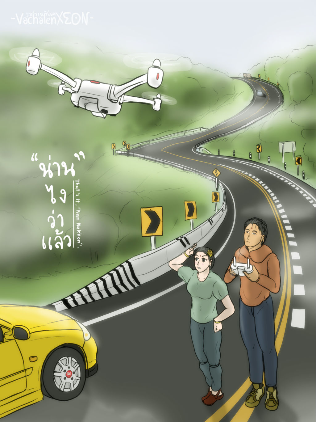 เอนทรีลงผลงานวาดรอบเดือนพฤศจิกายน ประจำปี 2566 แน่นอนว่าเดือนนี้ไม่ได้มีวันหยุดนักขัตฤกษ์ใด ๆ ทั้งนั้น นอกจากจะมีกิจกรรมของชาวต่างประเทศให้ได้ตามเกาะกระแสกับเขาบ้าง แต่สำหรับเอนทรีลงผลงานวาดรูปฉบับนี้ ก็จะออกไปทางส่งเสริมประชาสัมพันธ์การท่องเที่ยวในประเทศเป็นหลัก เนื่องจากเคยนำเสนอไปแล้วในเอนทรีก่อนหน้า แต่เป็นฝั่งภาคตะวันตก รอบนี้ก็จะเป็นฝั่งภาคเหนือกันบ้าง ซึ่งเราจะขึ้นไปยังจังหวัดน่าน สถานที่ที่เหมาะสำหรับการท่องเที่ยวในช่วงหน้าฝน-หน้าหนาว ยังมีธรรมชาติ มีวัฒนธรรมที่เกี่ยวข้องกับความเชื่อพื้นถิ่น-ศาสนาพุทธให้ได้ไปสัมผัส หรือไม่ ก็อาจจะเก็บไว้เป็นตัวเลือกในการวางแผนออกไปเที่ยวได้ในโอกาสครั้งต่อไป