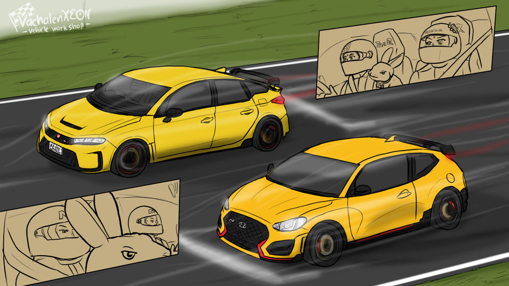 ยานพาหนะในผลงานนี้ : Honda Civic Type-R (FL5), Hyundai Veloster N (JS)