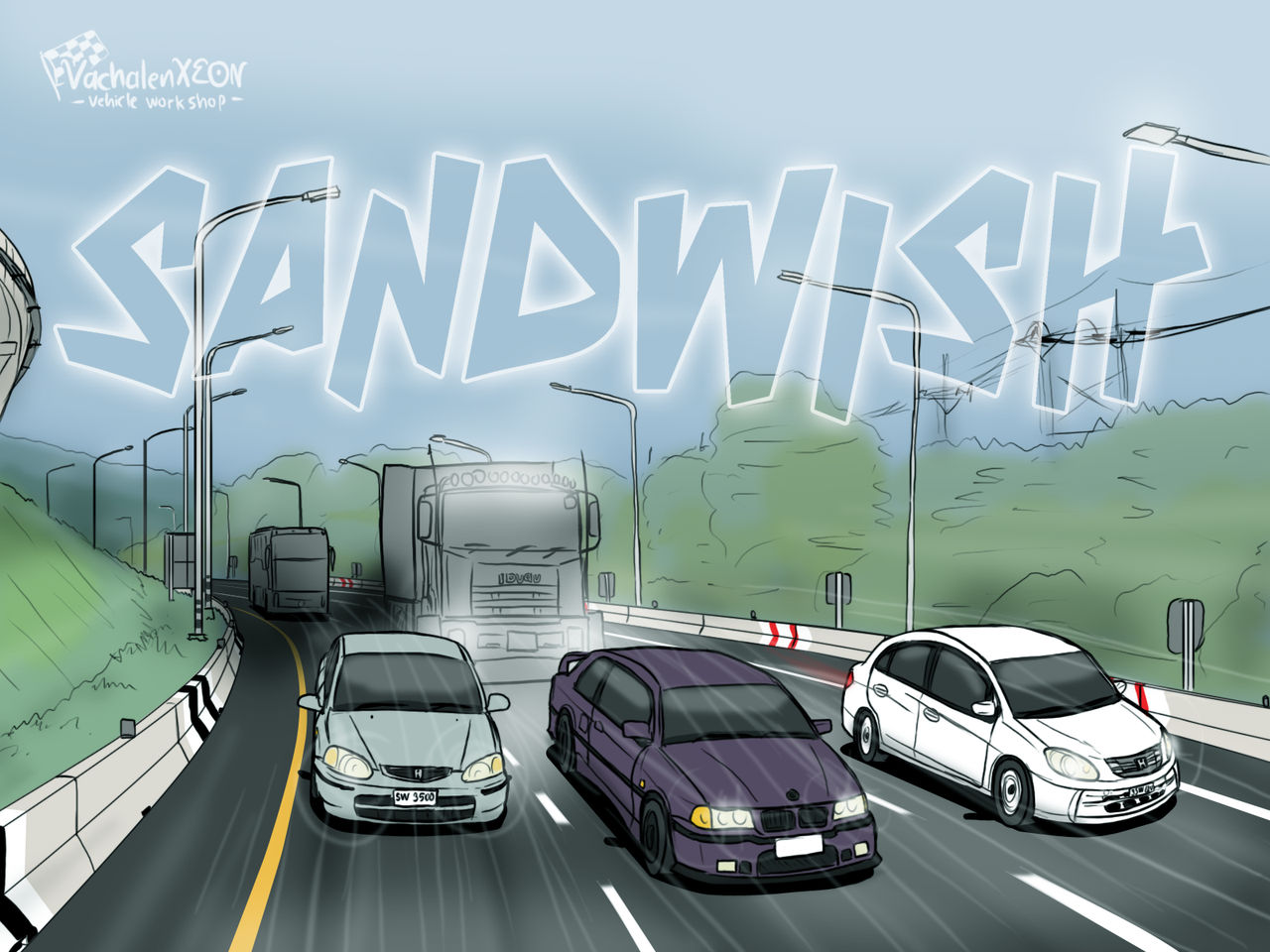 รถ 3 คันจาก Sandwish Media วิ่งเรียงหน้ากระดานมาแบบนี้ไม่ได้มาแบบเล่น ๆ แต่จะมา "สั่งสอน" รถบรรทุกที่มาพร้อมกับบังโคลนอันใหญ่คับถนน ท่อไอเสียหม้อลวกก๋วยเตี๋ยว ที่ทำตัวกร่างบนทางสาธารณะ ไม่ต่างไปจากรถใหญ่วิ่งแช่ขวา ไม่ยอมหลีกทางให้แซง และใช้ความเร็วสูงเกินกฎหมายที่กำหนด