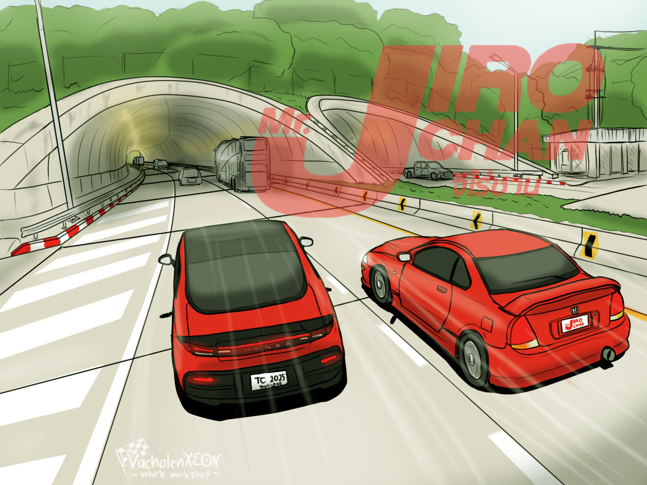 ไล่ตามรถรุ่นใหม่ตัวทดสอบสีแดง ผ่านรถรุ่นเดียวกันที่เก่ากว่าในนาม Mr. Jiro Chan บนเส้นทางผ่านอุโมงค์ทับลาน ไปยังจังหวัดปราจีนบุรี ซึ่งปลายทางที่นั่นคือ R&D ของรถยี่ห้อนี้