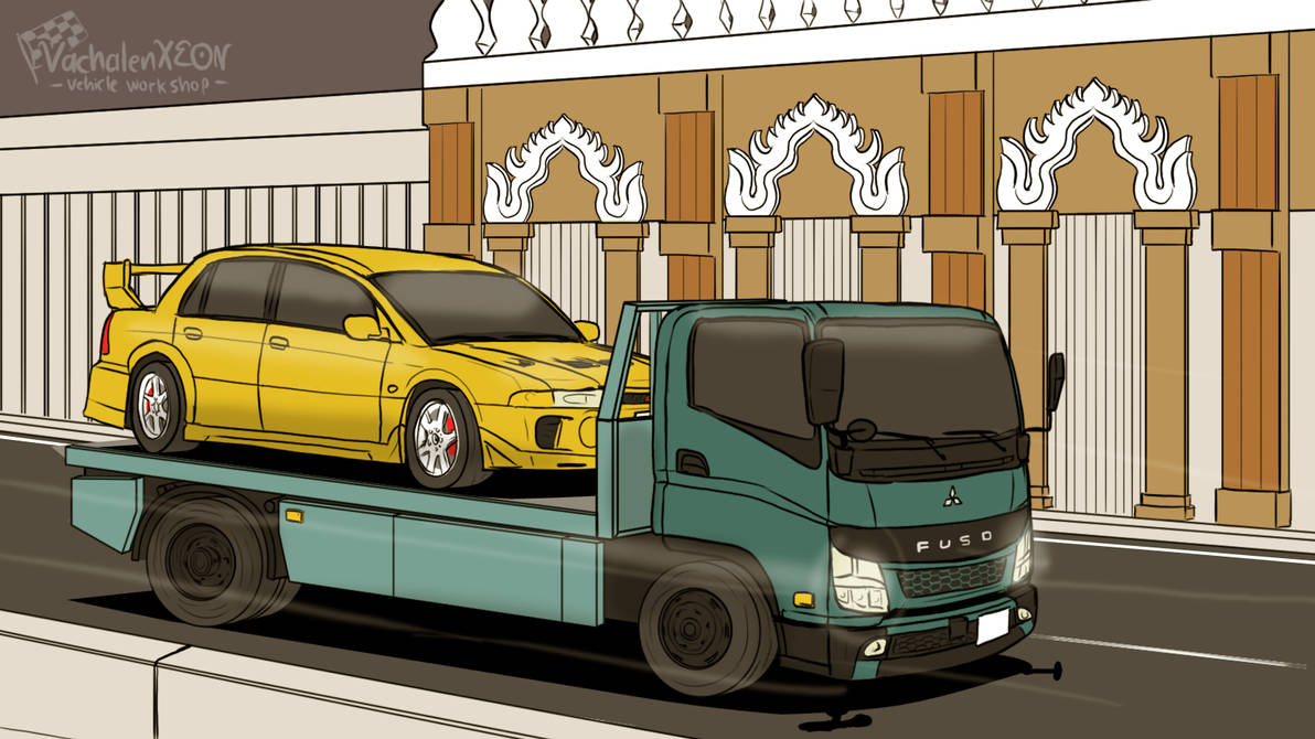 ยานพาหนะในผลงานนี้ : 1998 Mitsubishi Lancer Evolution V (CP9A), 2025 Mitsubishi Fuso Canter