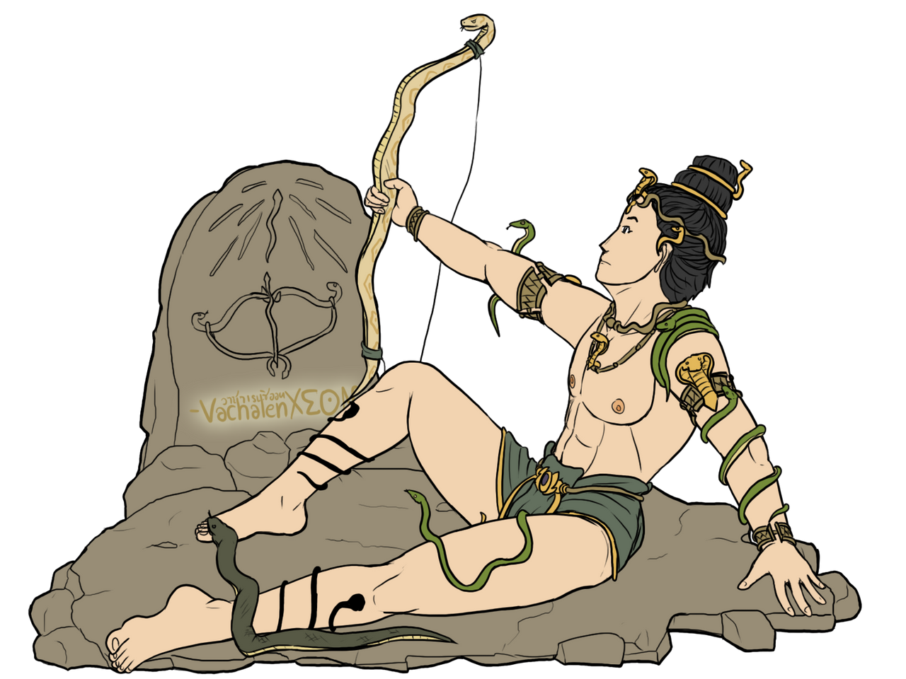 เปิดมุมมองที่เคยเห็นแว้บ ๆ จากภาพวาดของศิลปินชาวอินเดีย มาเป็นมุมมองที่เทพนักษัตรมะเส็ง นำเหล่างูตัวเป็น ๆ มาสร้างเป็นอาวุธเพื่อออกล่าเลื้อยฉกศัตรู