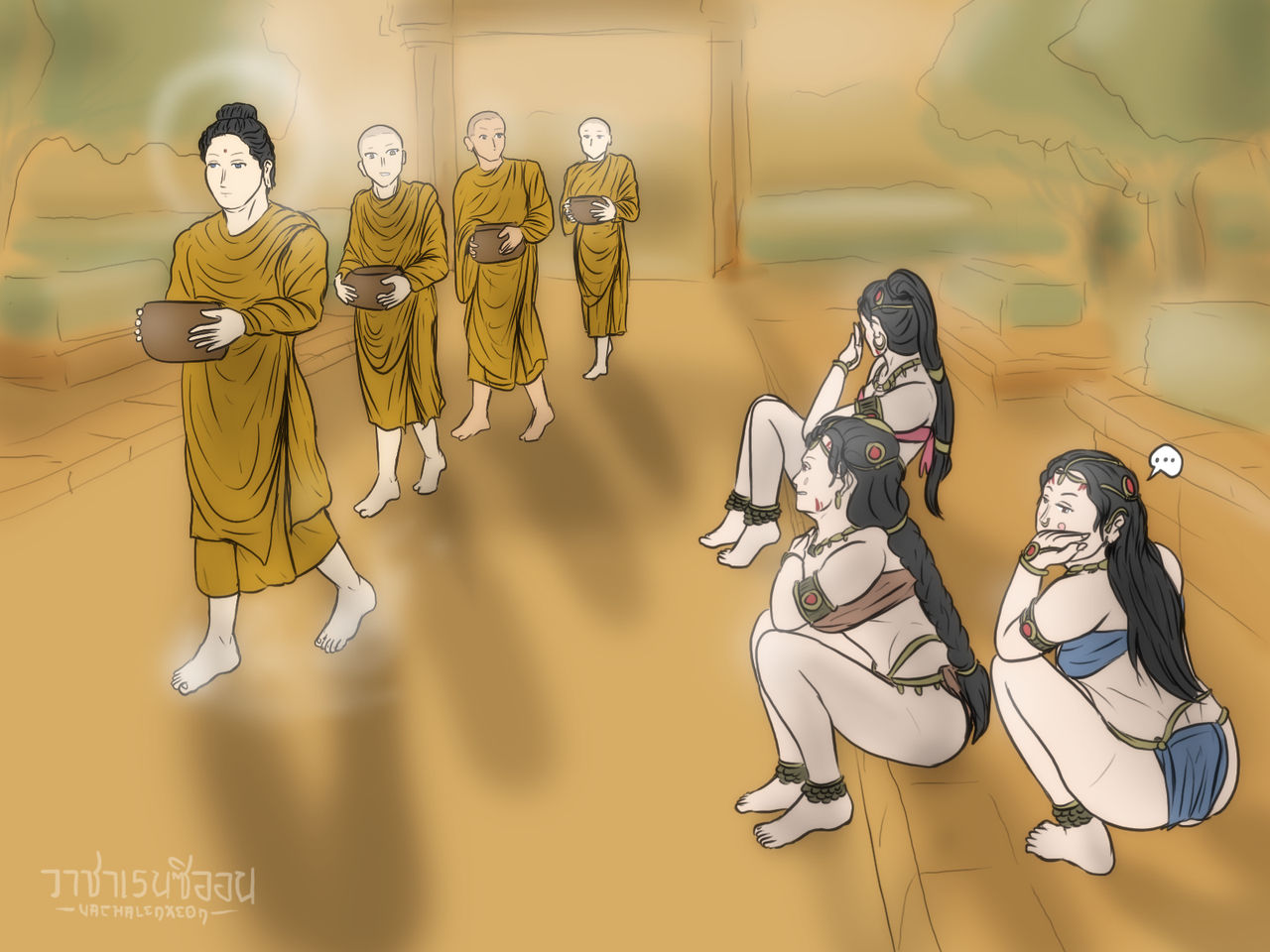 เต็มที่ไปกับผลงานที่วาดสะสมมาทั้งเดือน และหาช่วงเวลาวันพระวันอุโบสถมาลงให้ครบถ้วน ซึ่งแน่นอนว่าบางชิ้นงานก็ได้สอดแทรกสิ่งเล็ก ๆ น้อย ๆ สะท้อนสังคมตามที่ผู้วาดผู้จัดทำตั้งใจ และอาจจะไม่ได้ตรงกับพุทธประวัติแบบแม่นจับวาง เพราะอยากจะเปิดมุมมองอีกด้านที่ไม่กระทบกับเส้นเรื่องหลักมากนักนี่ล่ะนะ